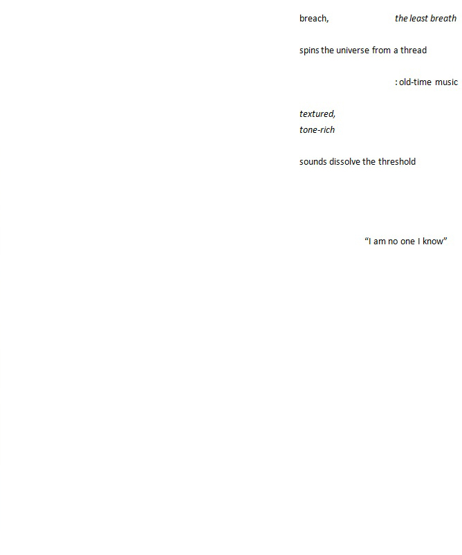 Derek Henderson’s work has appeared in Witness, CutBank, Black Warrior Review, The Journal, Puerto del Sol and VOLT. Inconsequentia, the book-length poem co-written with Derek Pollard, was published this past spring with BlazeVOX. Thus &, an erasure of Berrigan’s Sonnets, is forthcoming from If P Then Q Press.